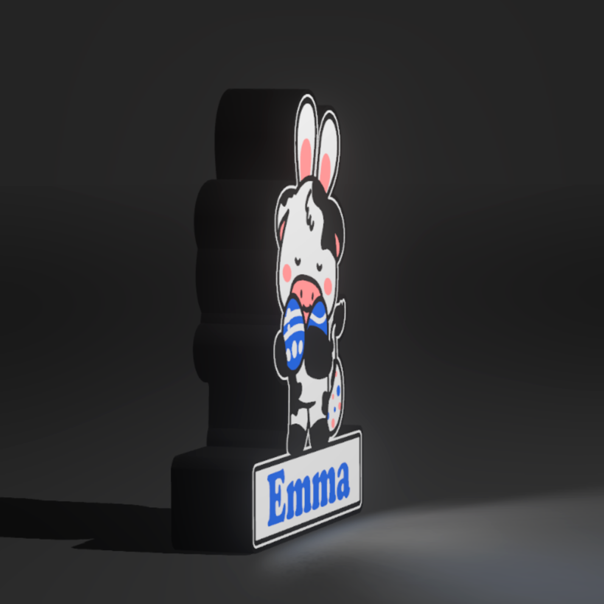 Boite lumineuse Vache de Pâques avec prénom personnalisable.