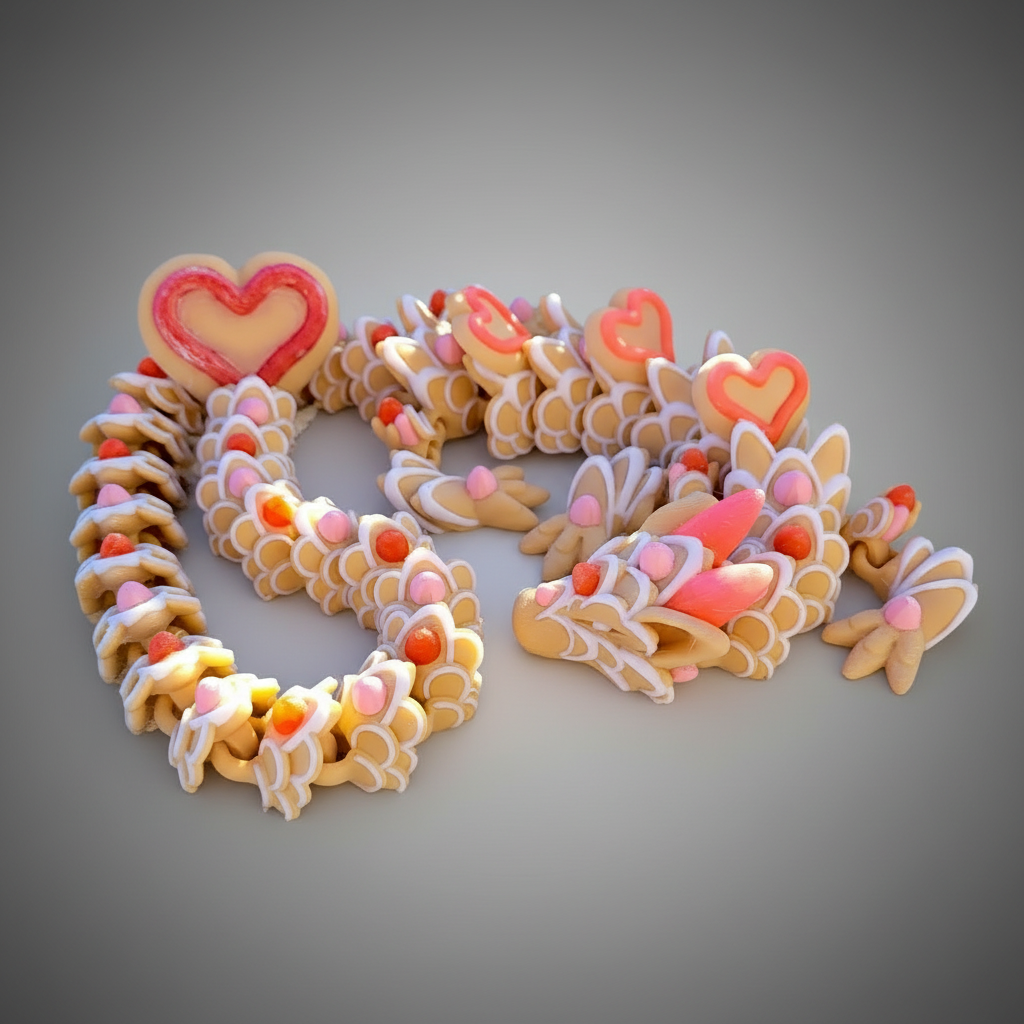 Dragon coeur articulé et coloré avec un style cookie